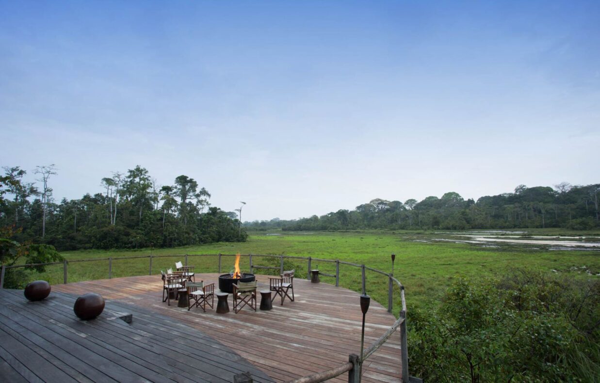 Ook de zes kamers van Lango Camp zijn verhoogd en geven een fantastisch zicht op het moerassige omringende landschap. De omgeving heeft een magnetische aantrekkingskracht op een enorme verscheidenheid aan vogels waaronder de Afrikaanse groene duif en grijze papegaaien. Maar ook kuddes buffels en olifanten lopen dag en nacht door het bos. Het kamp is strategisch gelegen in het Odzala N.P. waardoor u makkelijk toegang heeft tot de verschillende gebieden. Een hoogtepunt van uw verblijf in Lango Camp is een tocht per motorboot, traditionele prauw of zelf per kayak over de Lekoli en Mambili rivier.