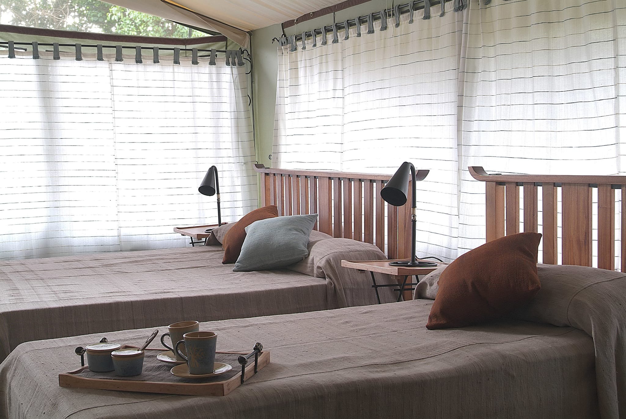 De kleinschaligheid (tien safari tenten) en de ligging van het kamp, diep in de Afrikaanse bush, bezorgen u een echte ‘weg van alles’ ervaring. De ruime tenten zijn smaakvol ingericht, voorzien van zonne-energie en beschikken over een en-suite badkamer, compleet met douche en spoeltoilet. Wanner u zich terug wilt trekken kunt u in alle rust vanaf uw eigen veranda genieten van de natuur om u heen.
