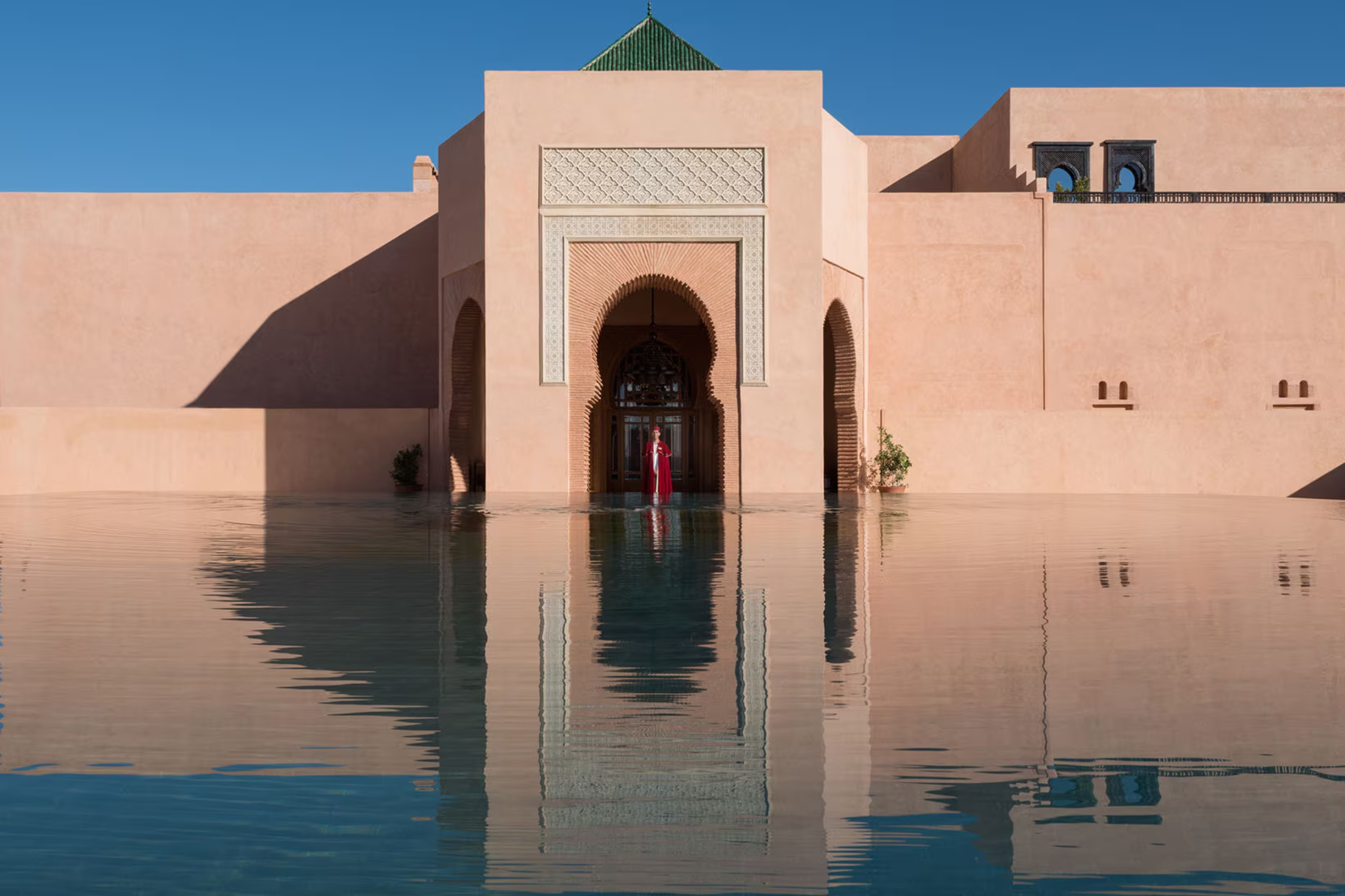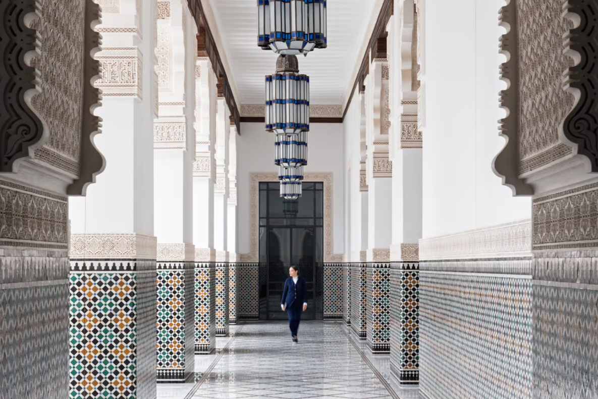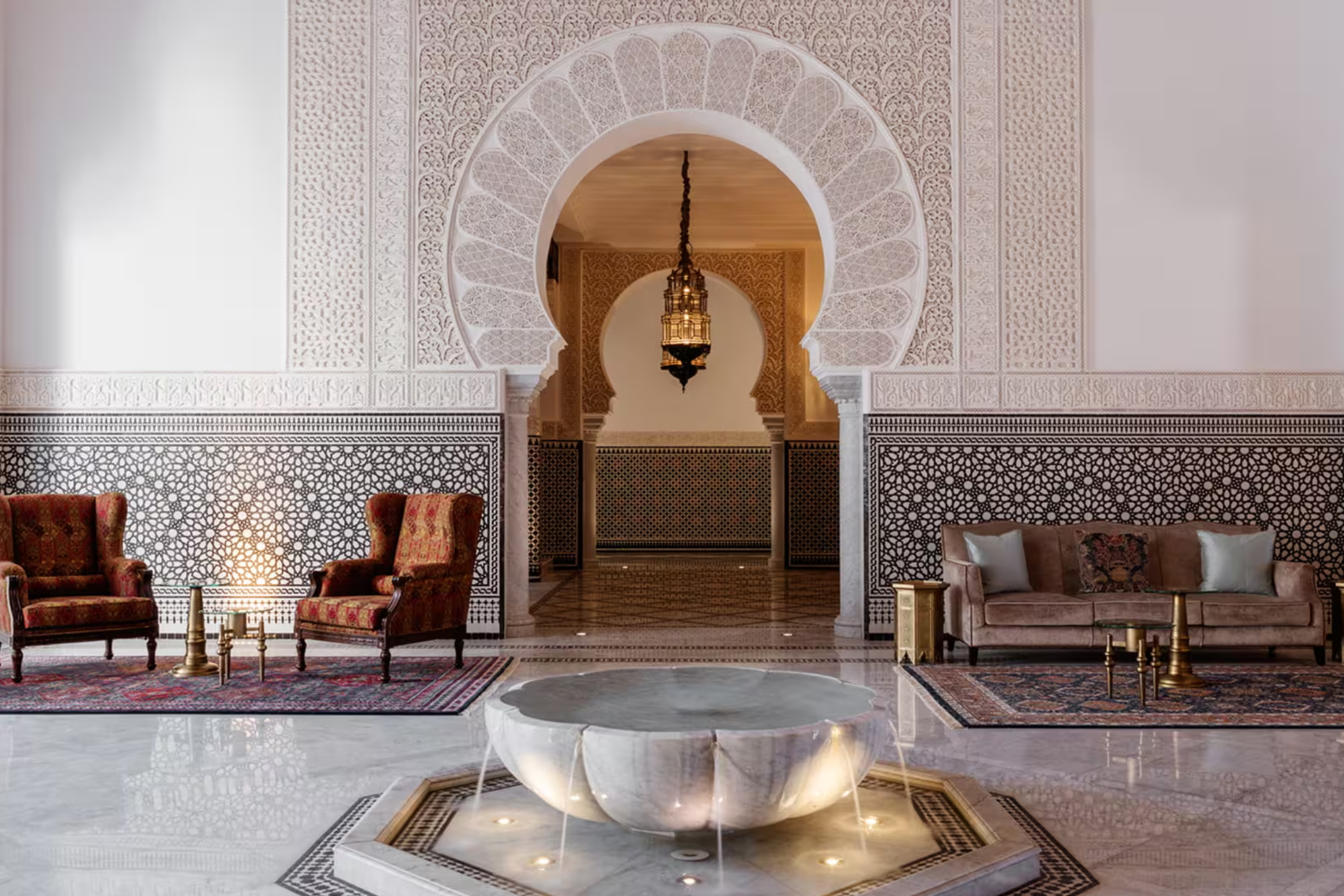 Midden tussen uitgestrekte citrusboomgaarden en eeuwenoude olijfgaarden ligt het 113.312 vierkante meter grote The Oberoi Marrakech, dat de rijke essentie van de Marokkaanse architectuur op meesterlijke wijze weerspiegelt. De indrukwekkende centrale binnenplaats is geïnspireerd op de 14e-eeuwse Medersa Ben Youssef, een voormalige koranschool en een van de meest iconische historische bezienswaardigheden van de stad, met prachtige tegelpatronen en sierlijke bogen die de traditionele Marokkaanse stijl tot leven brengen. Het adembenemende uitzicht op het met sneeuw bedekte Atlasgebergte maakt het betoverende decor compleet en zorgt voor een onvergetelijke ervaring.
