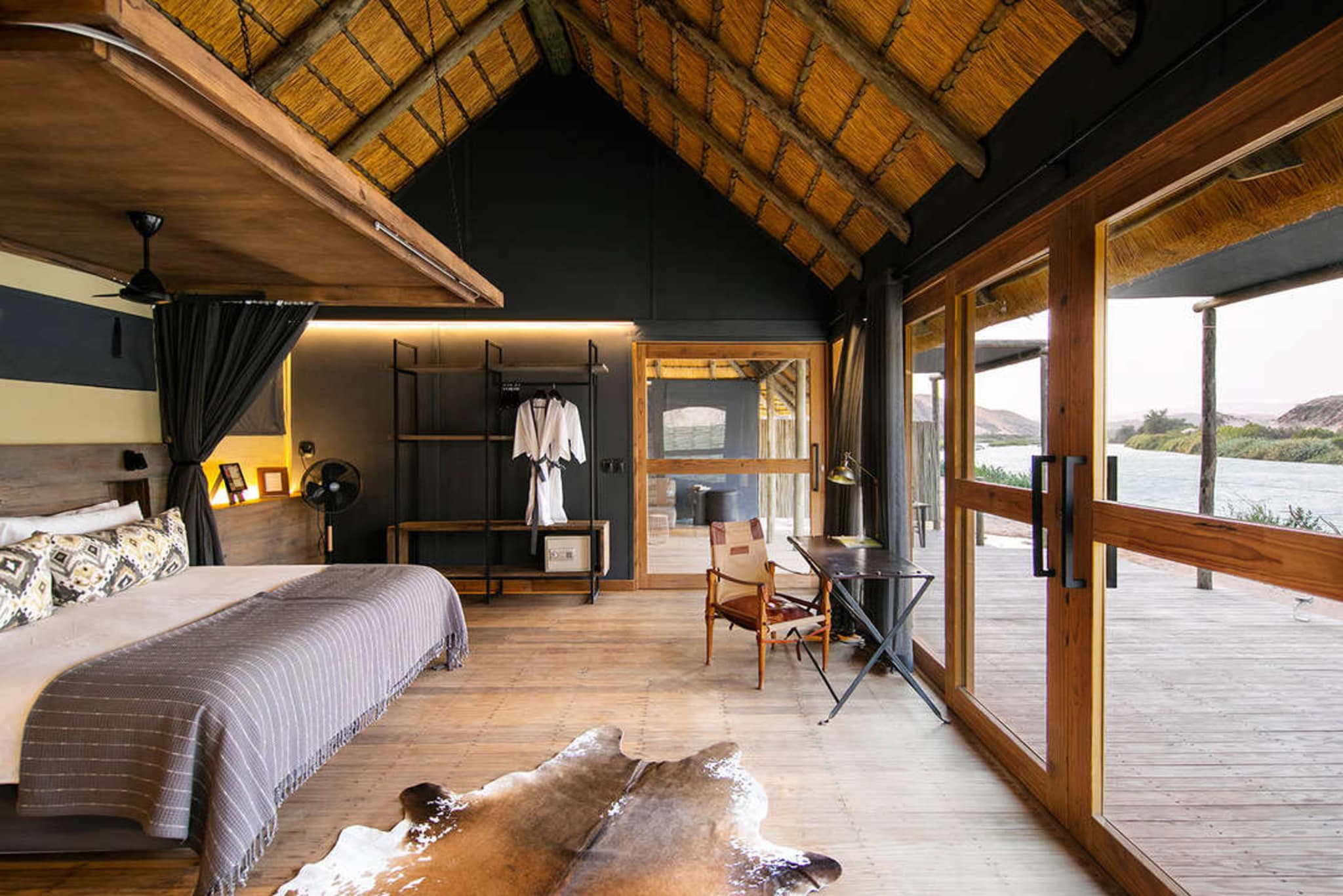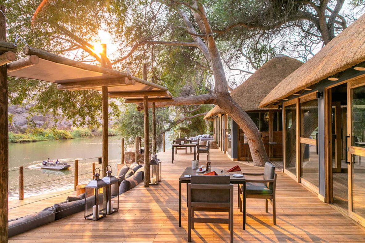 Serra Cafema is gelegen in het uiterste noordwesten van Namibië en is ongetwijfeld het meest afgelegen kamp in Zuidelijk Afrika. Deze lodge is alleen bereikbaar vanuit Windhoek via een drie uur durende vlucht met een licht vliegtuigje. De rivier Kunene is, in deze regio, de permanente bron van water en creëert een weelderige oase langs haar oevers. Het kleine kamp, gelegen op de oever onder grote schaduwrijke Albida bomen, bestaat uit 8 verhoogde en smaakvol ingerichte villa’s met en-suite badkamer. Waar u zich ook in de lodge bevindt, aan het zwembad, in de lounge, aan tafel in het eetgedeelte of in de hangmat op uw privé terras, steeds kunt u genieten van het spectaculaire uitzicht op de rivier.
