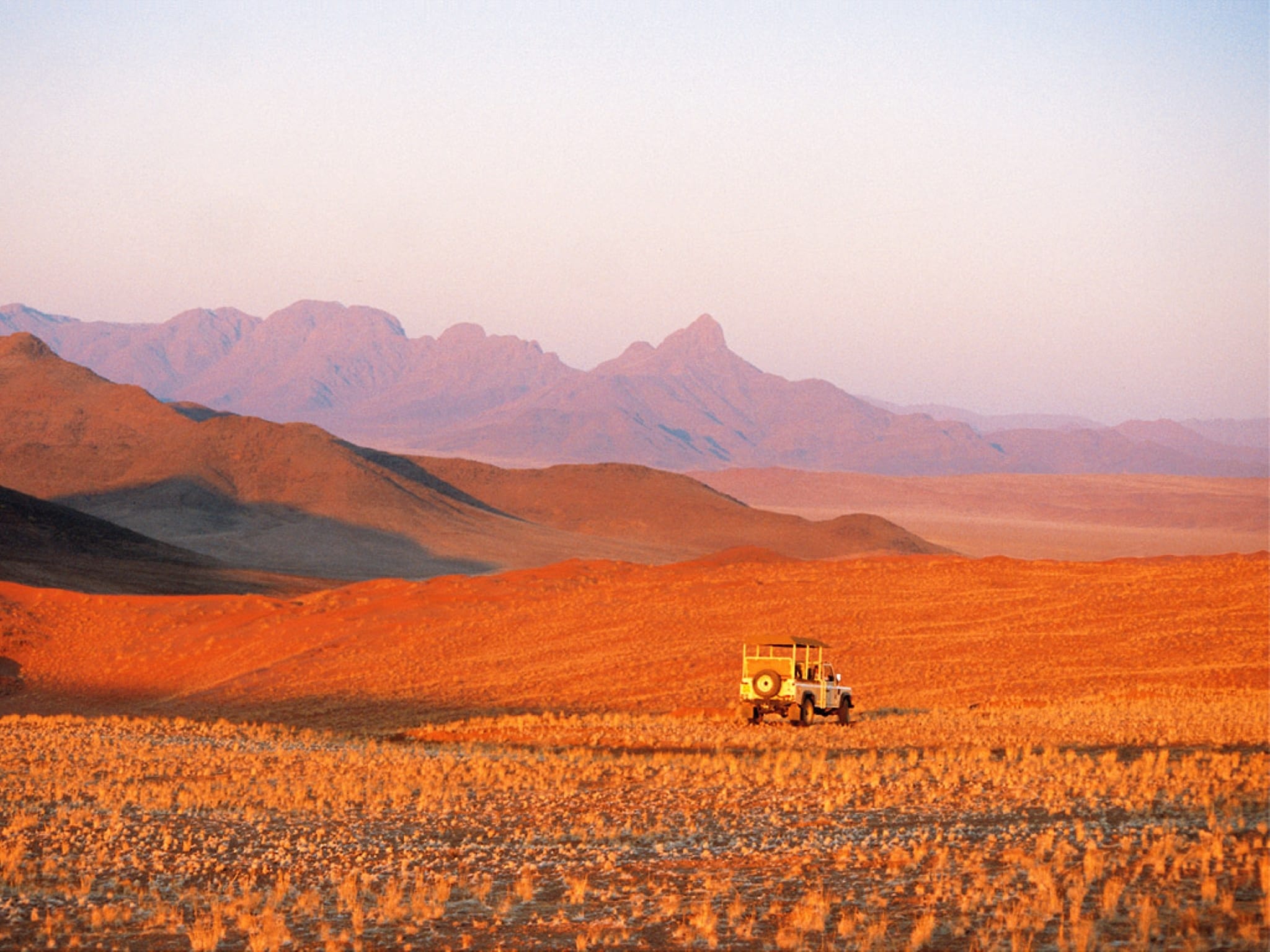 ’s Morgens wandelen door oranjerode duinen, wuivend gras en ruige rotspartijen. Terug in het kamp een lichte lunch nuttigen of een verkwikkende duik nemen in het kleine zwembad. Voor theetijd rustig ontspannen op uw veranda gewapend met een verrekijker. In de late namiddag een safari in een 4x4 voertuig op zoek naar vogels, gemsbok, zebra en ander klein wild. De dag afsluiten met gin en tonic bij een adembenemende zonsondergang om daarna heerlijk te dineren in de gezellige eetkamer en proeven van de prachtige wijnen uit de koele wijnkelder.