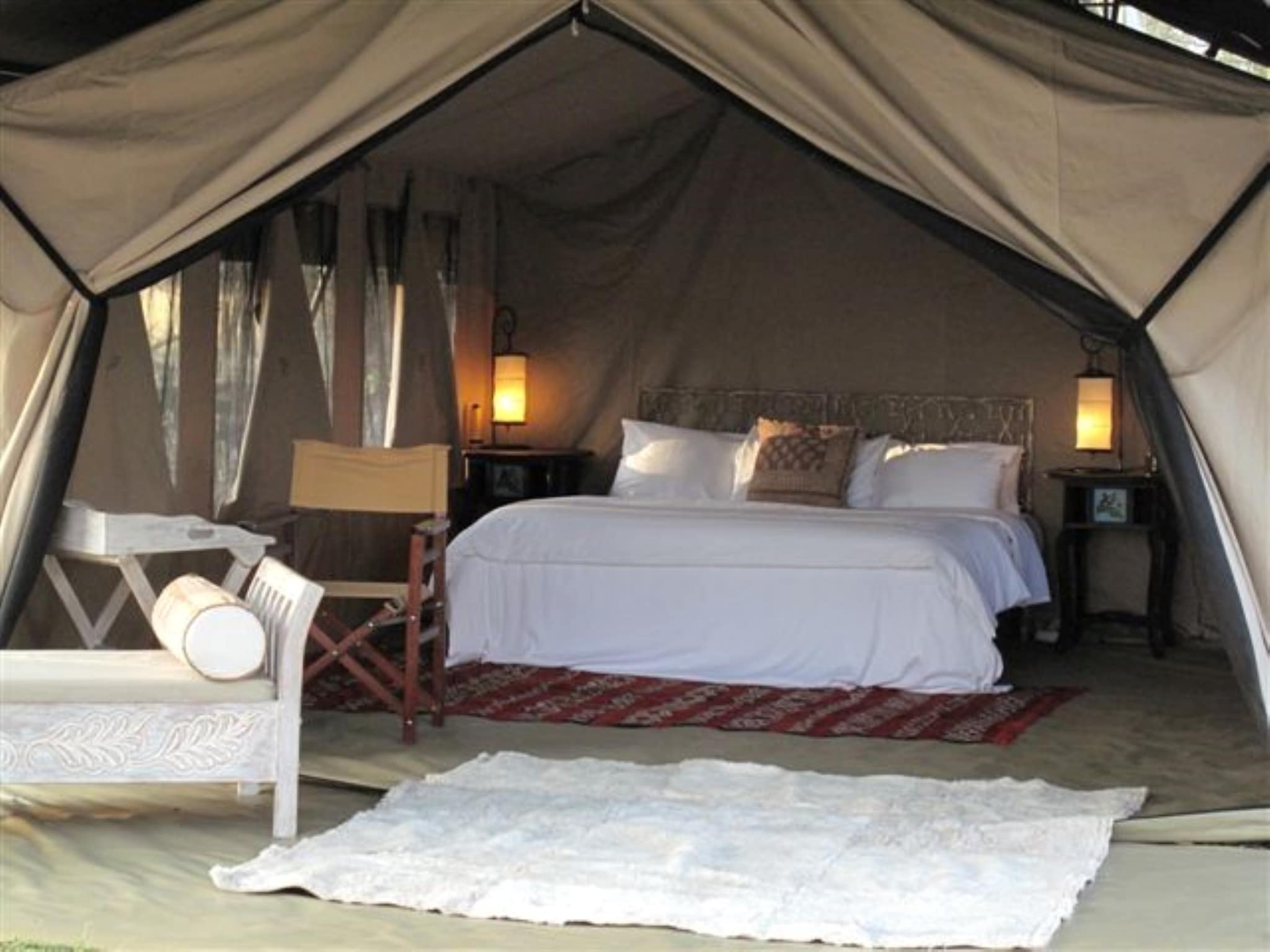 - Slechts zes comfortabele tenten waarvan twee suites gelegen tussen de Acacia’s