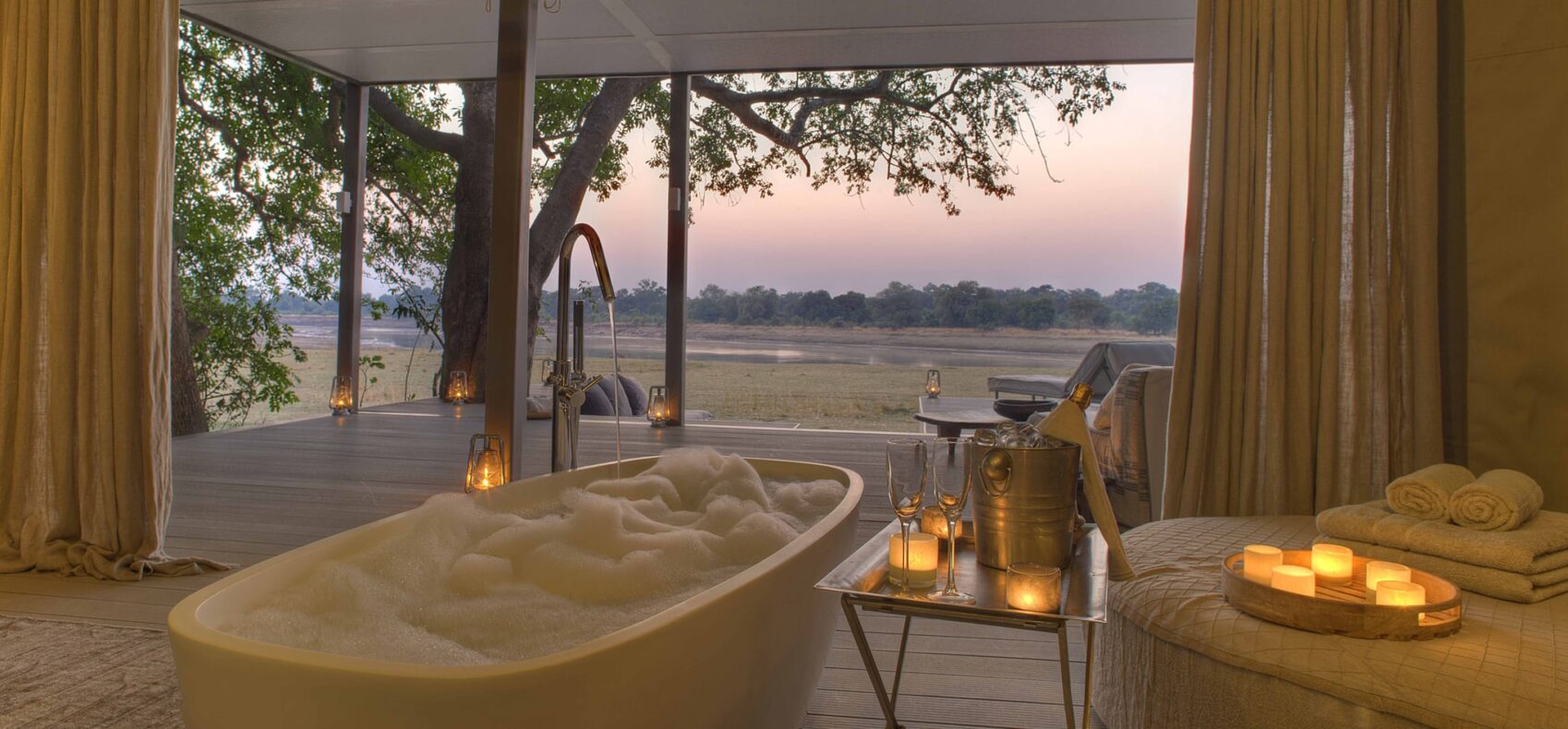 Chinzombo Camp, oorspronkelijk een eenvoudig en rustiek kamp, is nieuw leven in geblazen en omgetoverd tot een exclusieve luxe lodge met panoramisch uitzicht op de Luangwa rivier en omliggende bush waar het wemelt van wilde dieren. Zes verhoogde en minimalistische villa’s die lijken te zweven over het landschap zijn gelegen in de schaduw van gigantische oude bomen op een heuvelrug die een lus in de rivier volgt. Het decor is bewust eenvoudig gehouden met nadruk op comfort en de natuurlijke schoonheid van de omgeving. De gebruikte materialen zijn natuurlijk zoals lokaal geproduceerd leder, riet en vloeren gemaakt van hergebruikt hout. Wilde dieren spotten vanuit het koele privé plonsbad of vanuit een comfortabele stoel op het uitkijkplatform… pure luxe.