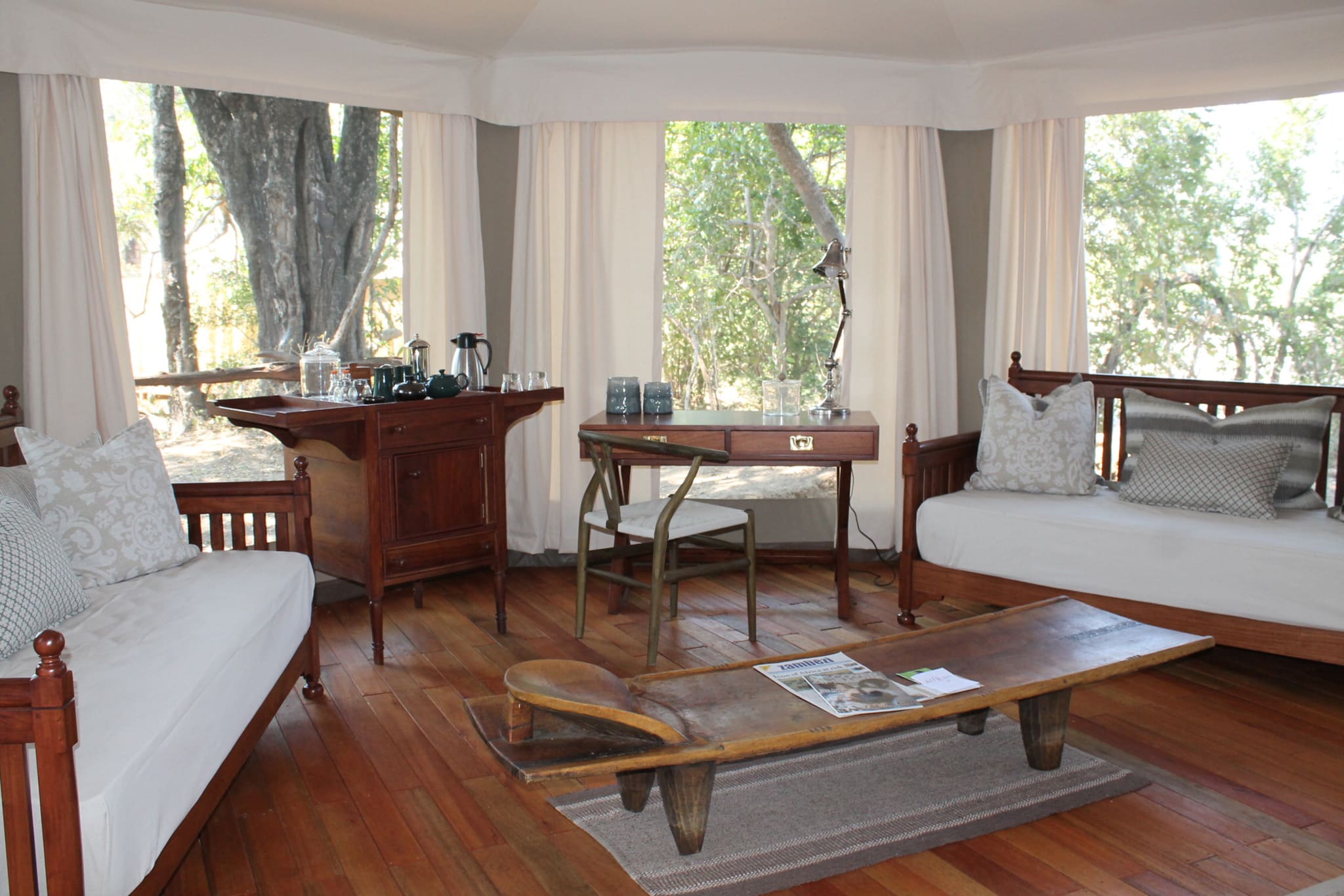 Kanga Camp van African Bush Camps ligt afgelegen in een privé-concessie in het hart van Mana Pools National Park. Het ecokamp omvat zes en-suite tenten met uitzicht op de waterpoel. Eén van de zes tenten is een familietent met een privé zit- en eetgedeelte.