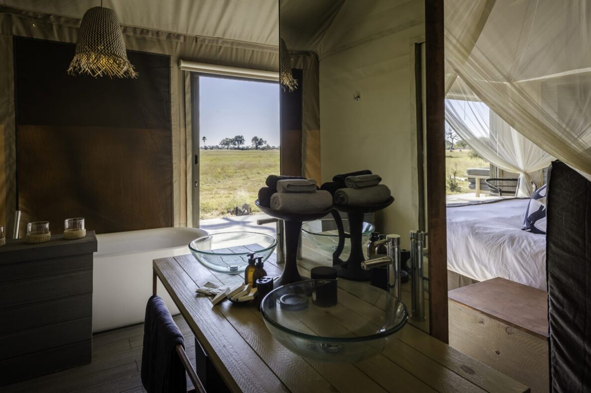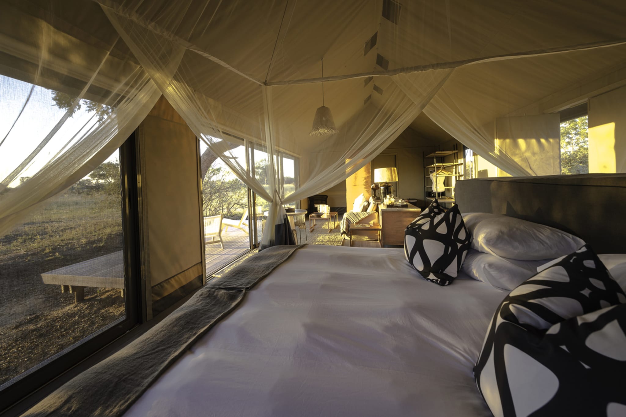 Het kamp is met zeven zeer luxueuze en-suite tenten en één familietent geschikt voor 18 gasten. Waar u zich ook bevindt, in de gemeenschappelijke ruimte, aan de open haard van de winterlounge of in de kleine bibliotheek, steeds kunt u genieten van het onbelemmerd uitzicht over de Makalolo Pan vol wilde dieren. Op het 'sleep-out deck' wegdoezelen onder een immense sterrenhemel omringd door de geluiden van de wildernis is een unieke ervaring die u zult koesteren.