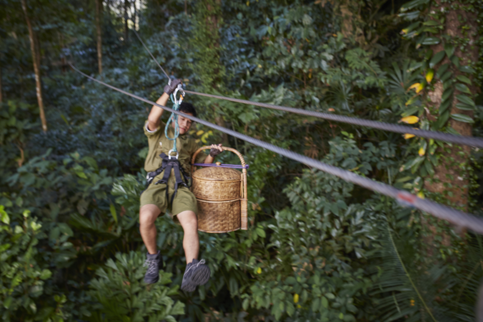 - Treepod dining; zink weg in een bamboe 'pod', laat u zachtjes in de top van een boom hijsen en laat gastronomische lekkernijen via een zip-line door een acrobatische ober serveren