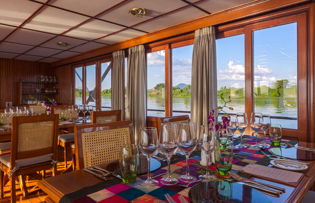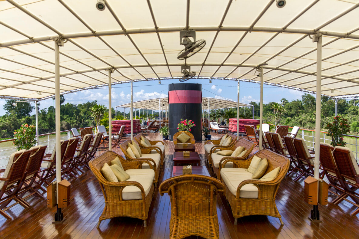 - Laat vanaf de brede promenadedekken of het enorme zonnedek de ontzagwekkende panorama's langs de rivier zich ontvouwen met de onophoudelijke activiteit van mens en dier die zo kenmerkend is voor het rivierleven van de Mekong