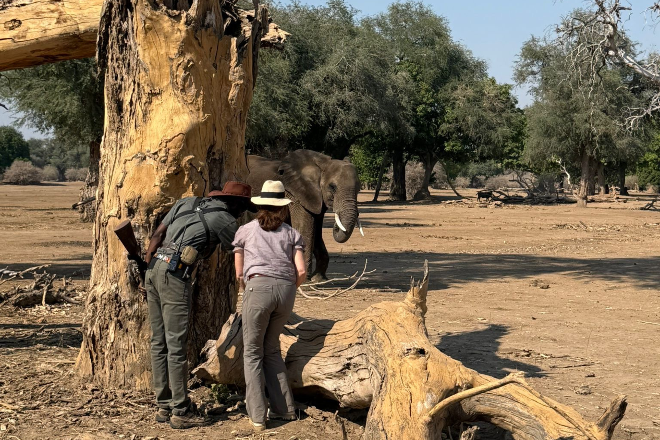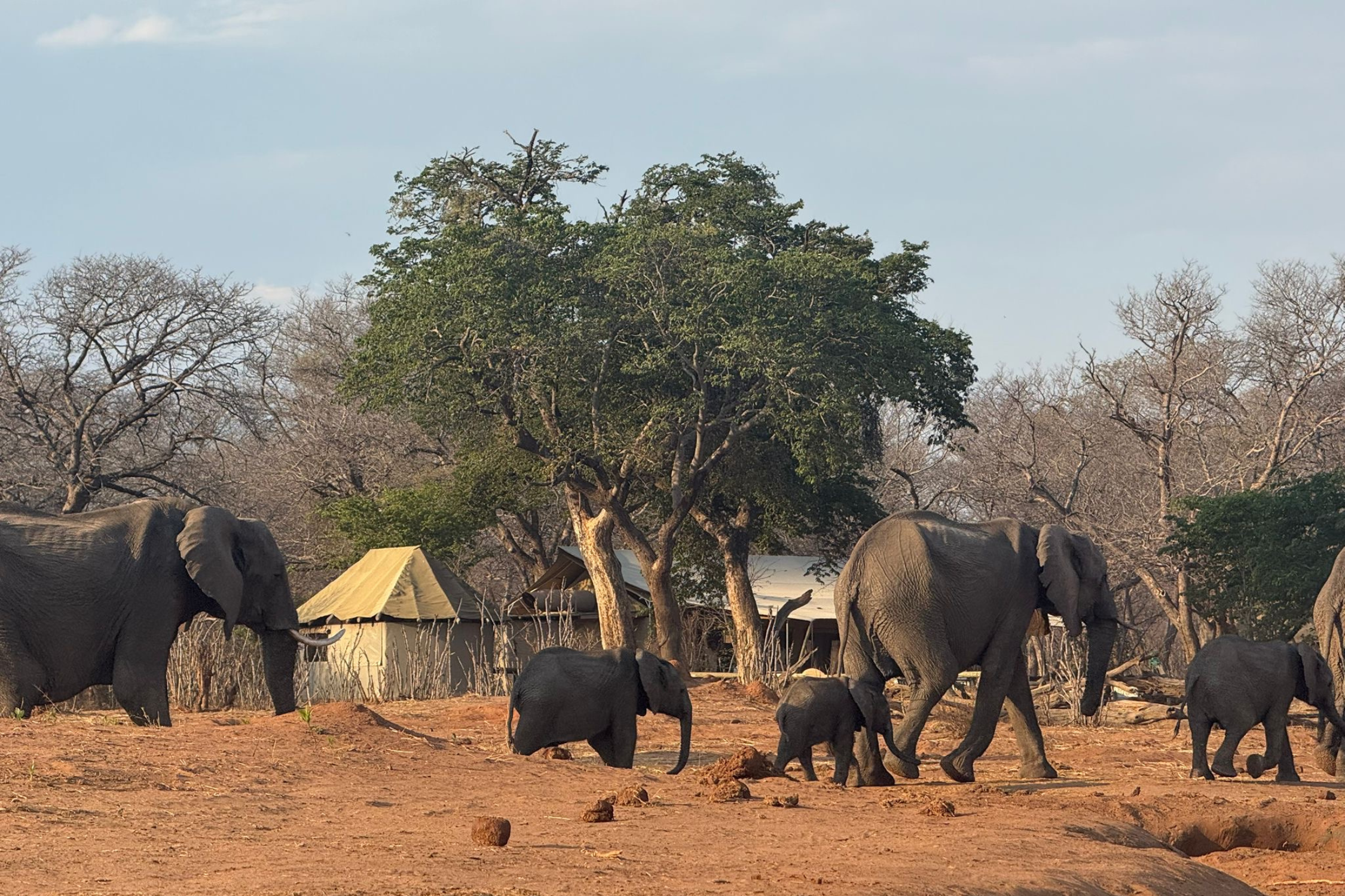 Na een goede nachtrust in Harare genoten we van een heerlijk ontbijt en vertrokken we naar de luchthaven voor onze vlucht met Mack Air naar Mana Pools National Park. Dankzij de lounge en hulp van het personeel verliep alles soepel. Tijdens de anderhalf uur durende vlucht hadden we een prachtig uitzicht over het afwisselende Zimbabwe. Bij aankomst op Mana Pools Airstrip werden we opgewacht door de rangers Thanusa en AB van Ingwe Pan Camp. Het kamp ligt bij een grote waterplas vlakbij de Chiruwe-rivier en biedt ruime tenten met luxe voorzieningen en uitzicht op de waterhole. Tijdens de gamedrive naar het kamp spotten we al wild, en bij aankomst wachtte een heerlijke lunch. In de namiddag volgde de eerste safari in open 4×4’s, met als hoogtepunt een pack van twintig painted wild dogs. ’s Avonds genoten we van een diner onder de sterren, terwijl nieuwsgierige hyena’s en een olifant een kijkje kwamen nemen.