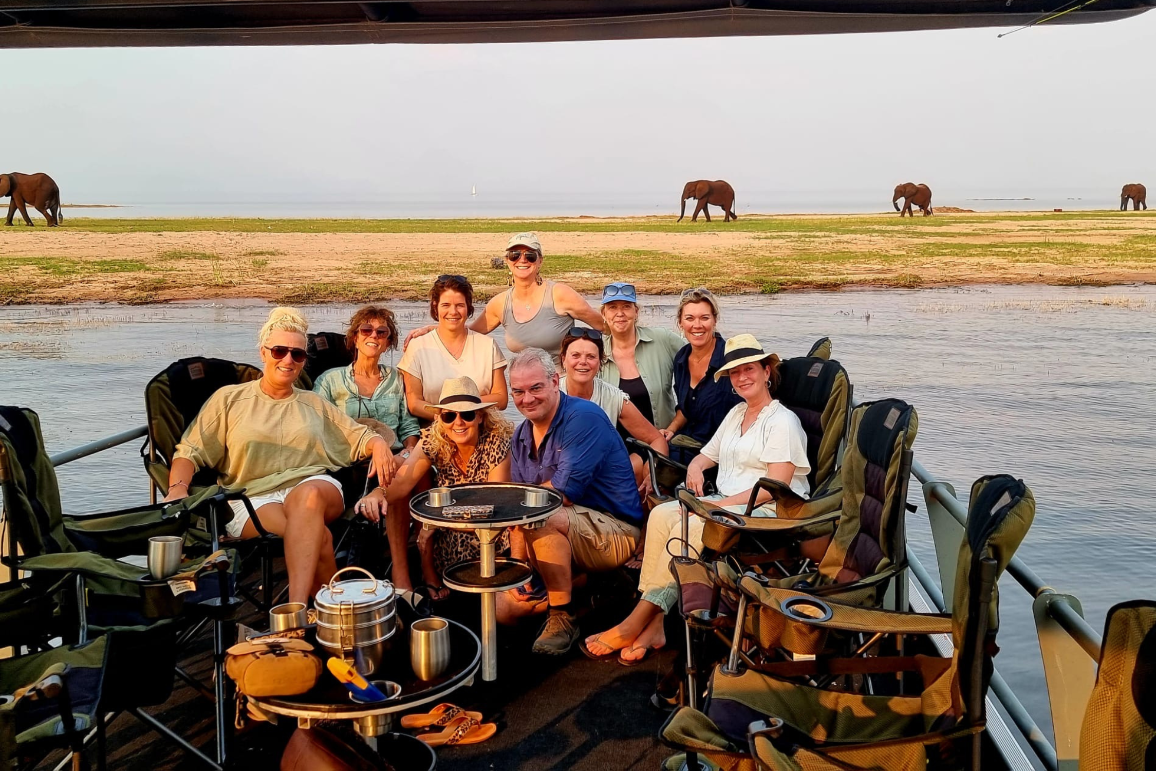 De wekker ging al om vijf uur, maar echt slapen lukte nauwelijks door de geluiden van de bush. Na een vroeg ontbijt stapten we in de open 4×4’s voor een ochtend safari en zagen we kuddes olifanten en ander wildlife ontwaken. Bij het meetingpoint stonden de rangers Mark en Liberty klaar om ons naar Molori Mashuma Camp te brengen, een nieuw kamp vol luxe en comfort. Na het verkennen van de ruime tenten en villa’s genoten we van een heerlijke lunch. In de middag gingen we opnieuw de bush in langs de Zambezi-rivier, waar we olifanten en leeuwen zagen. We genoten van de zonsondergang met een drankje bij de rivier, en de dag eindigde met een sfeervol diner onder een eeuwenoude baobab, met braai, salades en Afrikaanse trommelritmes onder de sterren.