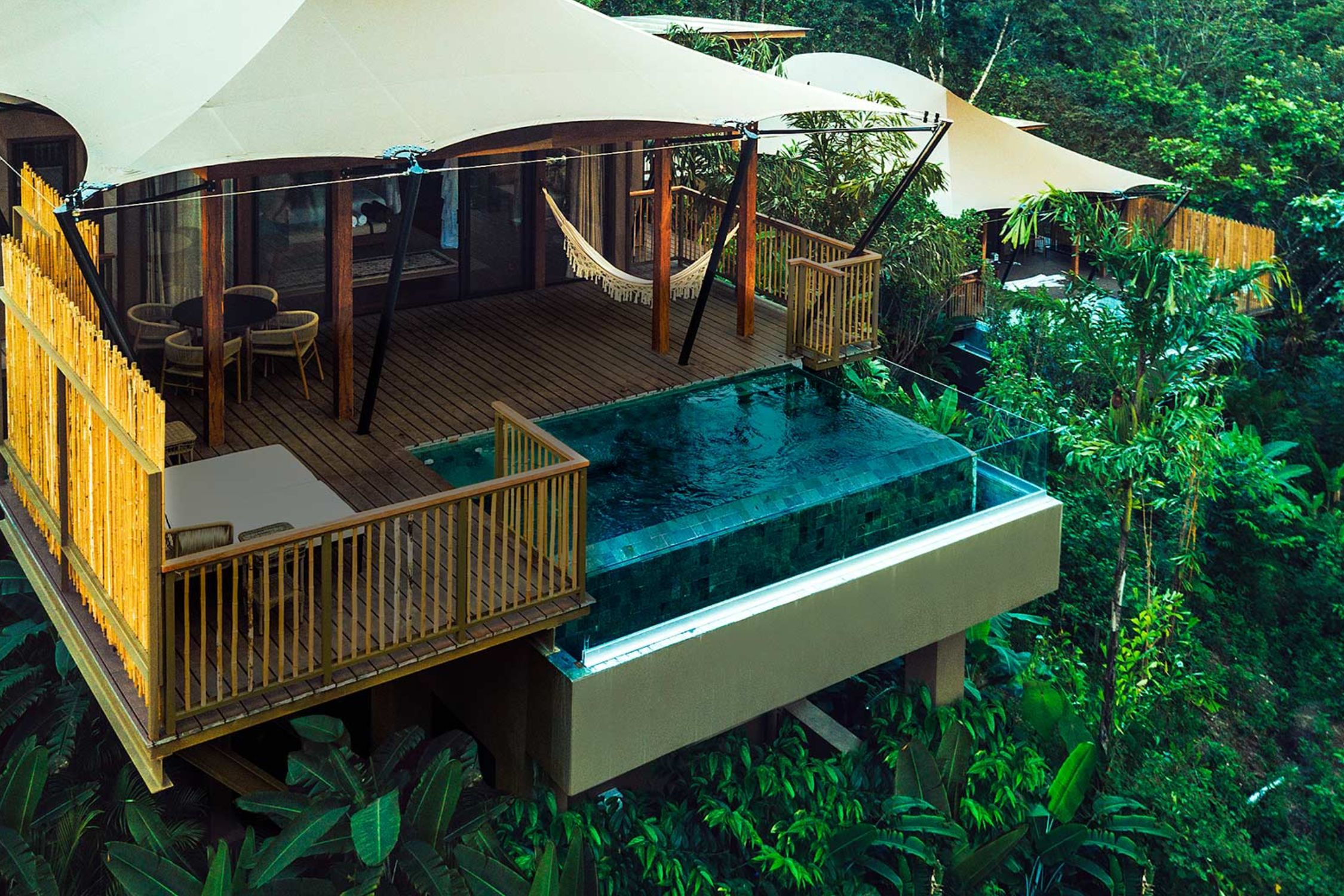 Choose to stay at the unique Nayara Tented Camp, located in the Arenal region. Inspired by African safaris, the spacious tents are a blend of eco-friendly luxury with a local “Pura Vida” vibe. A great place far from civilization and close to nature where you can unwind to the soothing sounds of the jungle. The resort’s facilities include a swimming pool with swim-up bar and a restaurant with large terrace surrounded by the beautiful rainforest. Also, you can enjoy plunge pools with water from hot springs in the middle of Costa Rica’s dense forest.