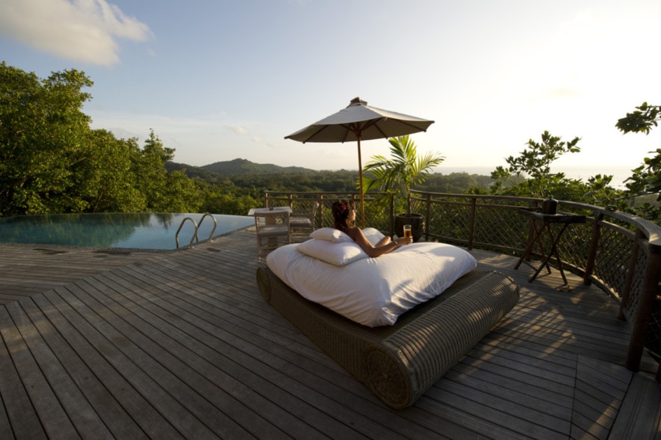 Le Domaine de l'Orangeraie is located on the relatively small island of La Digue, a gem in the heart of the Seychelles. The tropical setting, local architecture and the combination of the warm wood in pure zen style make for a 'far from home - home' feeling. The 55 villas are situated in the middle of an idyllic setting, the heart of a lush tropical garden full of birds and just a few steps from the white sandy beach to the azure ocean.