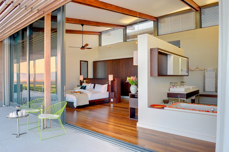 - Each of the detached suites is stylishly furnished with luxurious four-poster beds, spacious bathrooms, a separate lounge with fireplace and a private wooden deck with spectacular panoramic views