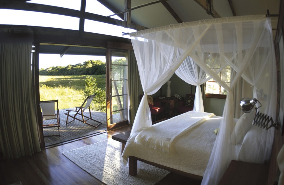 Makakatana Bay Lodge is located on the shores of Lake St. Lucia within the iSimangaliso Wetland Park, in the heart of Africa's largest natural estuary. The bright and spacious suites are tucked away in pristine forest and interconnected by raised wooden galleries. Rooms are decorated in safari style with warm colors, dark wood floors and have beautiful mosquito nets draped around the bed. Open the sliding doors, take a seat on the terrace and unwind in this verdant oasis. Where the world can't find you...