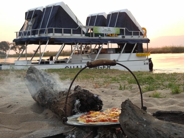 Board your small private cruise ship, The River Gods and experience your safari in a very special way. Over the next few days, you will cruise upstream on the Lower Zambezi River. Enjoy unimaginably beautiful and impressive landscapes while spotting wildlife along the way. Discover breathtaking nature during unforgettable activities on foot, by boat or in a jeep. Actually, we cannot present you with a better Africa experience than this one in wildlife-rich Zambia and Zimbabwe. In the early evening, you will have the African wilderness to yourself for a while. You will also lack nothing in the culinary field. The chef will prepare a fantastic dinner for you every night while you enjoy under the twinkling stars. Sleep in tents on the roof of the boat or on the shore with only a mosquito net around you. Fall asleep to the mysterious sounds of the African wilderness. Where the world can't find you...