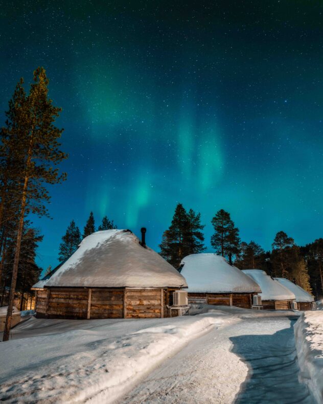- Aurora Log Cabins feature a panoramic window offering views of the starry sky and northern lights