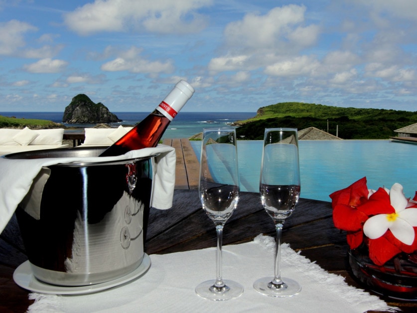 The hotel has only five bungalows and 3 apartments with plenty of space in between, all with ocean views. The stays are luxuriously equipped with super king size beds, air conditioning, minibar, 37" plasma TV, blu-ray disc player and have spacious balconies with hot tubs and hammocks. With more than 40 employees, Pousada Maravilha offers very personal service.