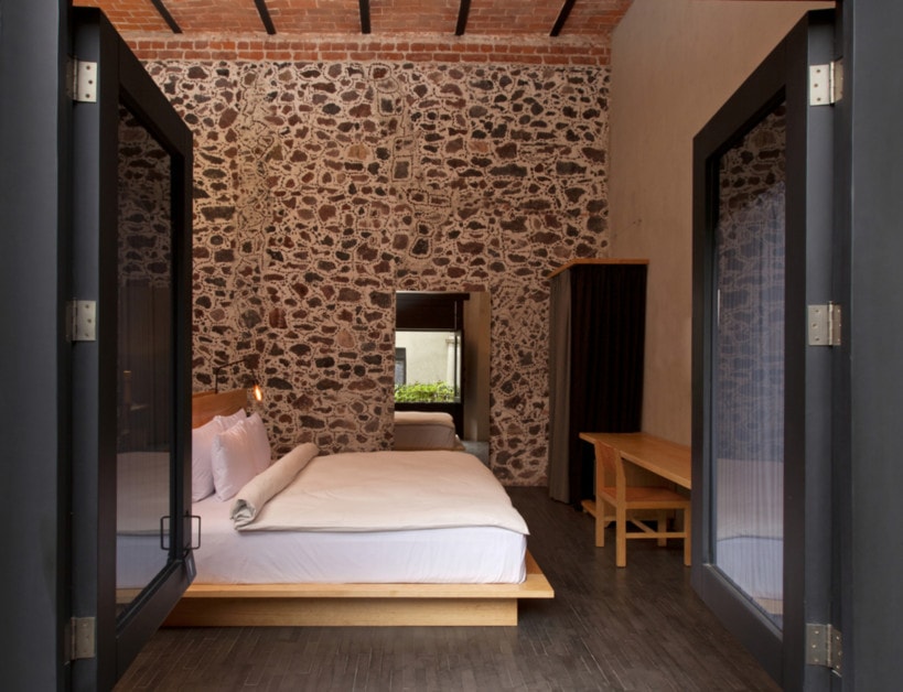 Once a palatial residence, now renovated into a design hotel. The elegant DOWNTOWN hotel stands for colonial grandeur with an industrial edge. Through the stripped concrete walls, vaulted brick ceilings, tiled floors and wooden details, history still seeps. It is also known as 'Palace of the Tombs of Miravalle' and can be found downtown Mexico City.