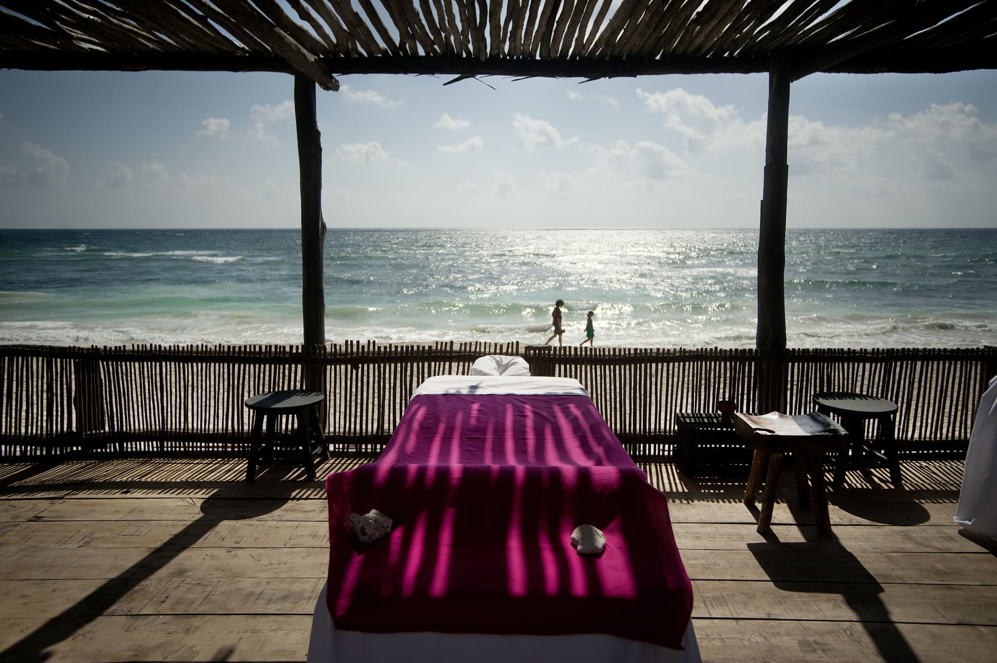 There are 85 cabañas in various versions, from modest jungle huts to beachfront villas. All have a rustic charm and excel in the luxury of simplicity. Everywhere you can immerse yourself in the splendour of nature and the laid back rhythm of Tulum from the hammock. From the restaurant, you can see the azure waters while enjoying fresh local produce. In the So Happy Neo Spa, in addition to the usual treatments, secrets of the Mayan shamans are used to pamper mind and body. Music is an important component; There are spontaneous jam sessions in the sand and parties to celebrate the new full moon. The whole idea is creative interaction and collaboration.