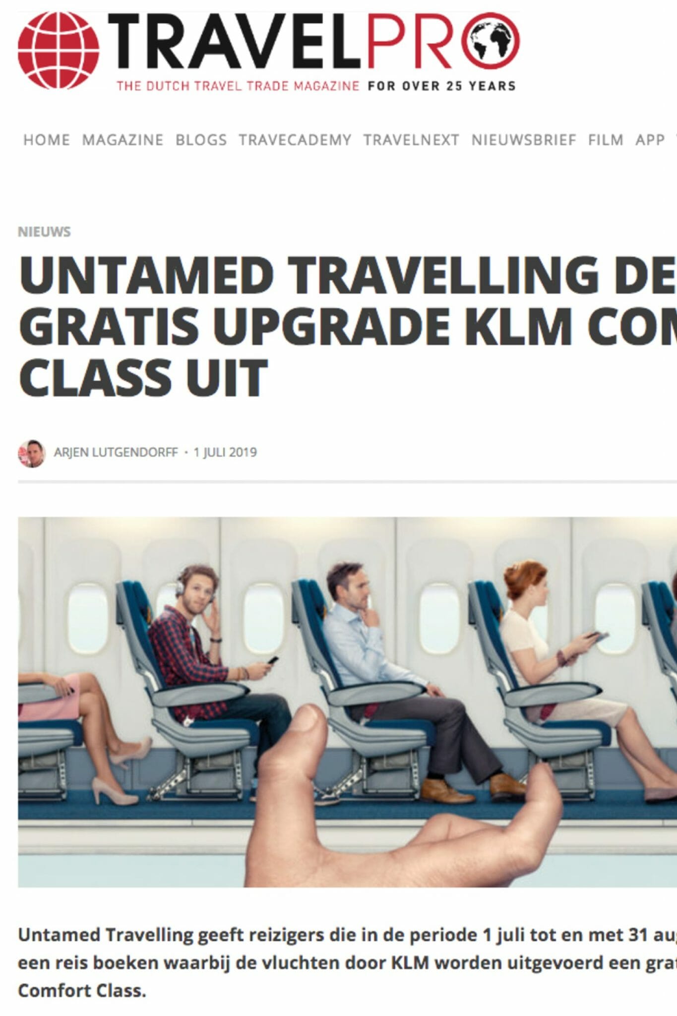 TravelPro also shares Untamed’s summer campaign; book in July and August and enjoy a free Comfort Class KLM upgrade.