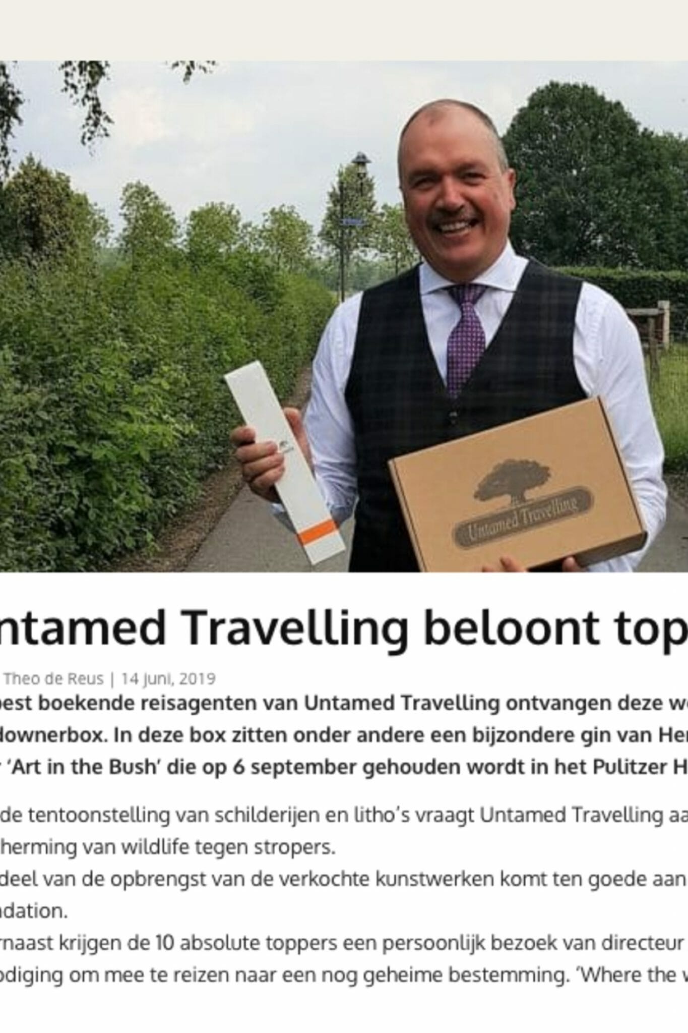 TravMagazine about Untamed’s reward of the top bookers of 2018 with a sundownerbox which includes an invitation to ‘Art in the Bush’.