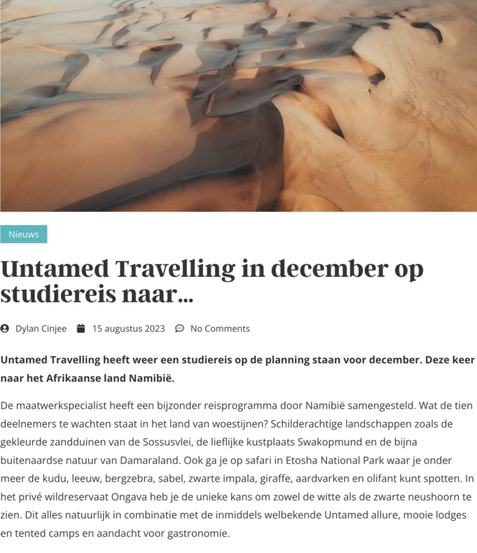 Verrassingsronde langs topboekers Untamed in Travelpro, Travmagazine en Reisbizz18 juli 2023 Bekijk website